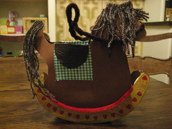 Man nehme 13 Muttis oder/und Vatis, stecke sie in den Bastelkeller des Zwergenlandes und lasse ihrer Kreativität freien Lauf. Heraus kann dann so etwas wie dieses göttliche Pferdchen kommen. Suzi und Didi hatten die Idee und haben dann diese Bastelwerke mit kleinen Geschenken für unsere Knirpse gefüllt.