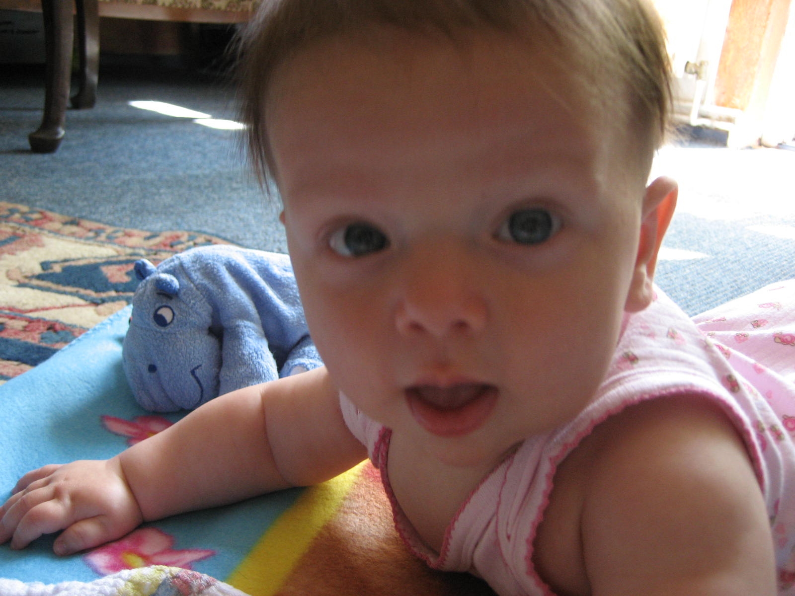 Dafür ist sie tagsüber natürlich recht aufgeweckt, aber das ist schon okay – ich bin ja im Büro. Sie fordert ganz schön viel Aufmerksamkeit, und wenn sie die nicht kriegt, gibts Terz. Aber im Großen und Ganzen ist sie echt friedlich, guckt sich die Welt mit großen Augen an und hat am Wochenende auch schon ganz bewusst nach ihren Hasen gegriffen.