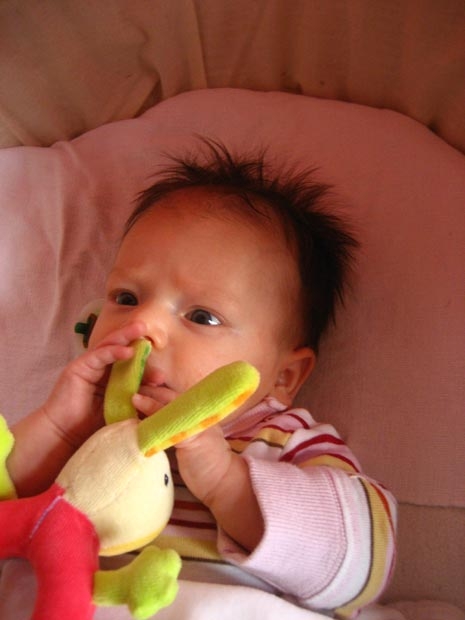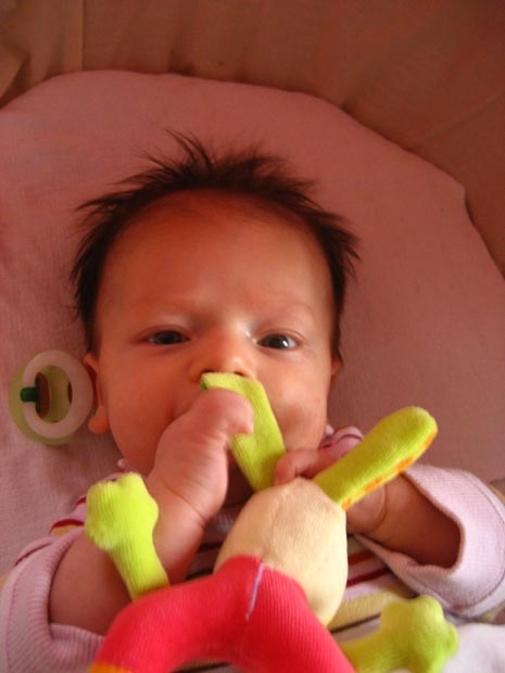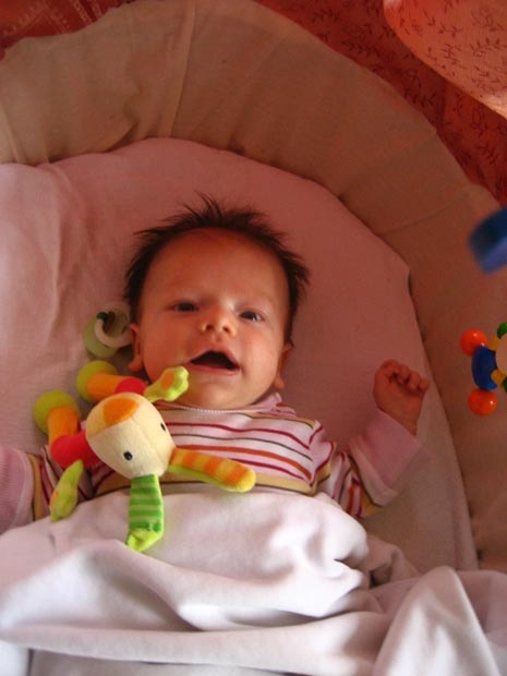 Gestern hatte unsere Kleene Geburtstag. Zwei Monate ist sie nun schon alt und ganz schön groß ist sie geworden. Und weiterentwickelt hat sie sich auch ganz gut. Alle sind neidisch, weil Mathilda die ganze Nacht durchschläft. Und damit ist nicht gemeint, dass sie um Mitternacht das letzte mal gestillt wird und dann hält sie bis 5 Uhr durch. Nein, das heißt: Sie wird gestillt und anschließend, gegen 22 Uhr ins Bett gebracht. Und dann hält sie bis Sechs/Halbsieben durch. Und das ist ganz schön Klasse für Nadin und mich. Und das alles ganz ohne Drogen…